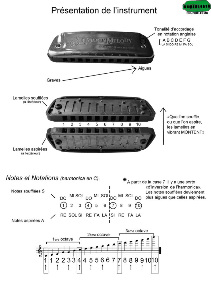• chaque harmonica possède une tonalité indiquée en notation anglaise