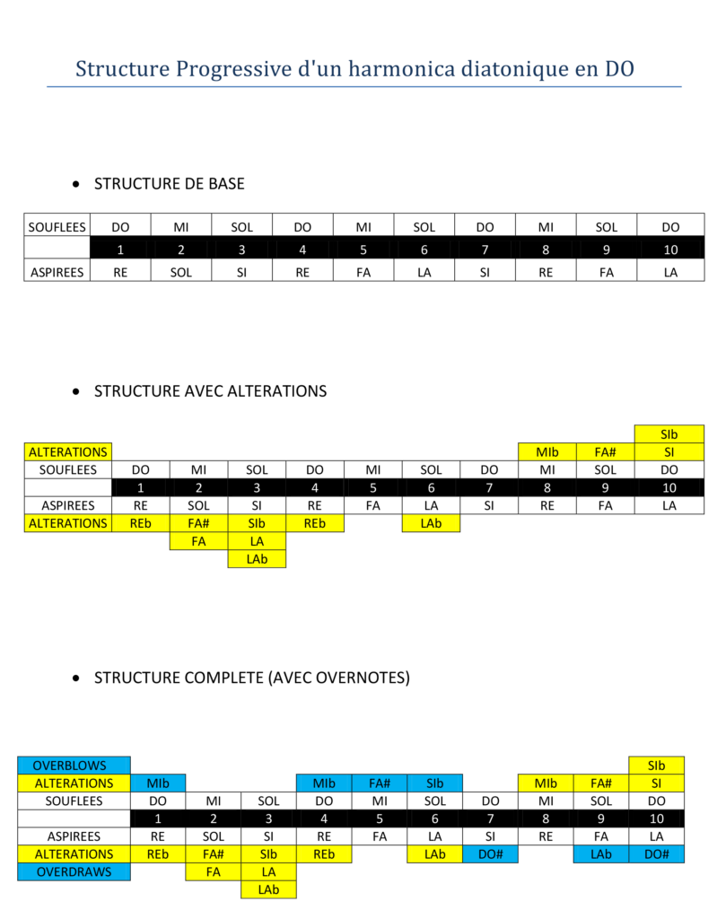 A noter que certains altérations sont un peu plus difficiles a maitriser comme le SI en 10’↑ et qu’il vaut mieux que son harmonica soit bien « rodé ».